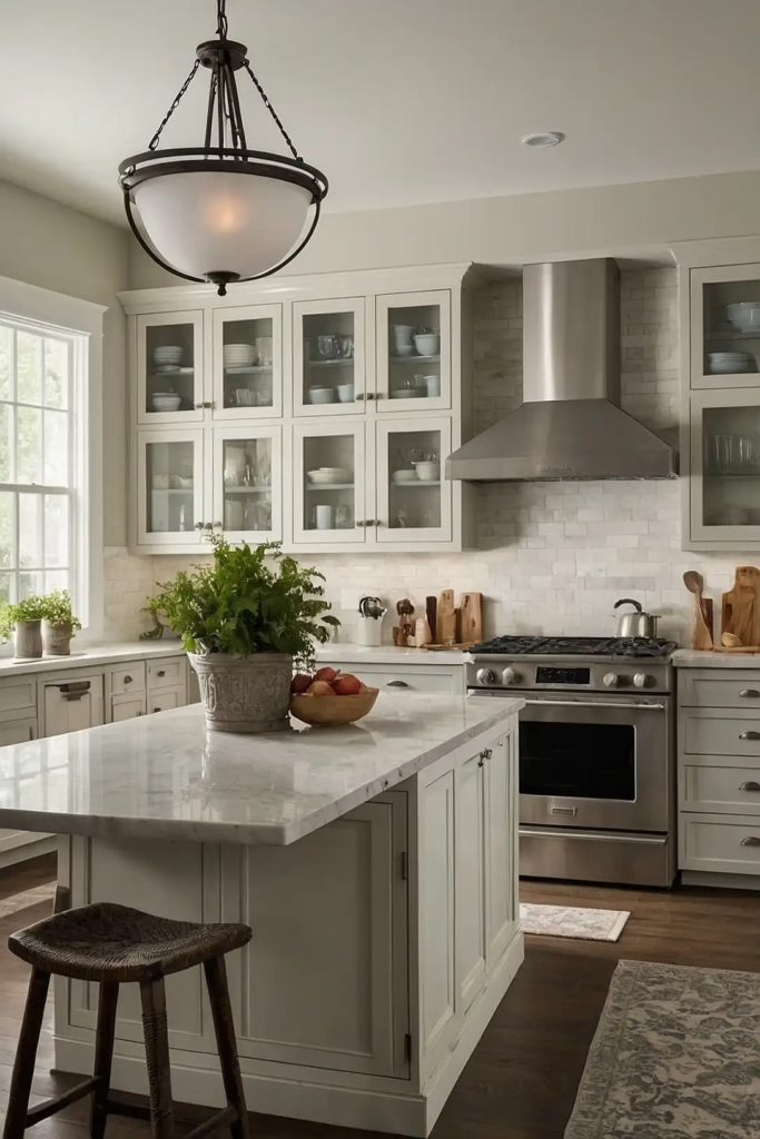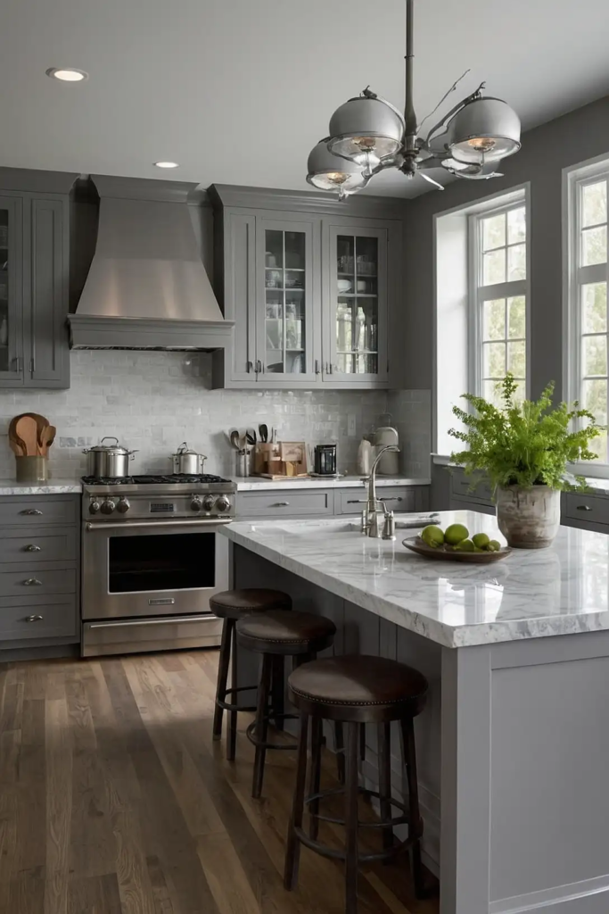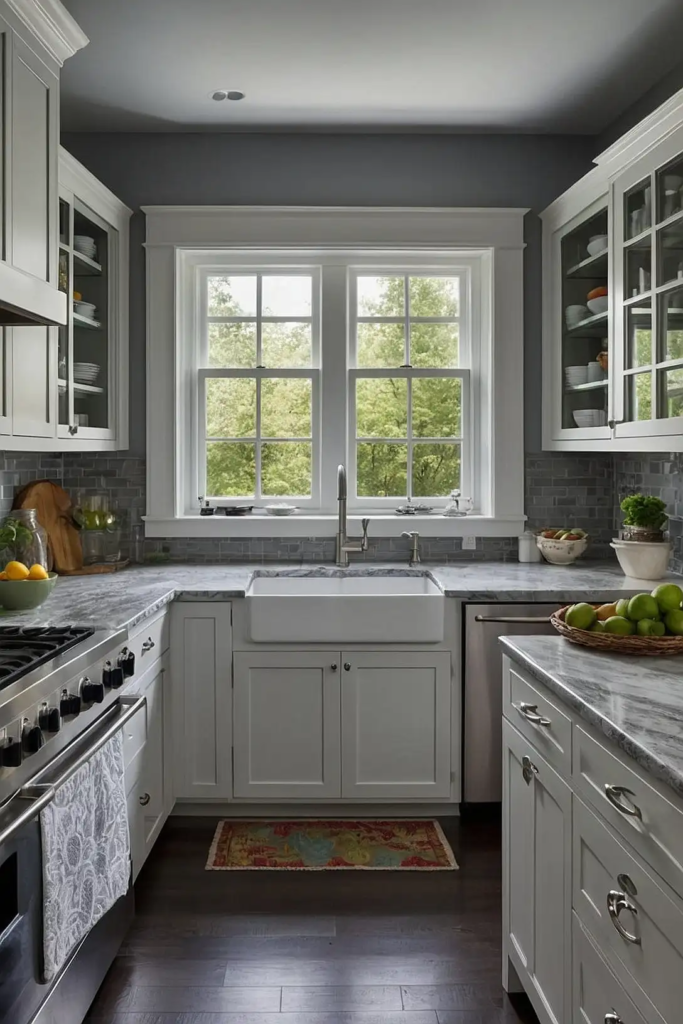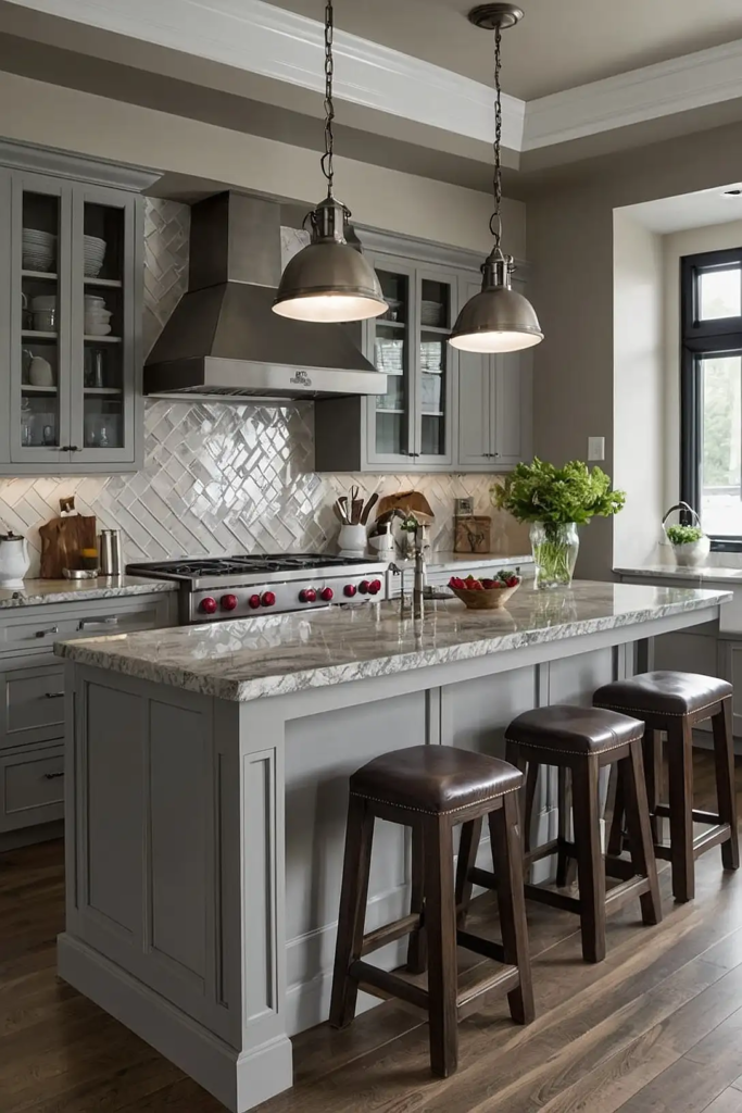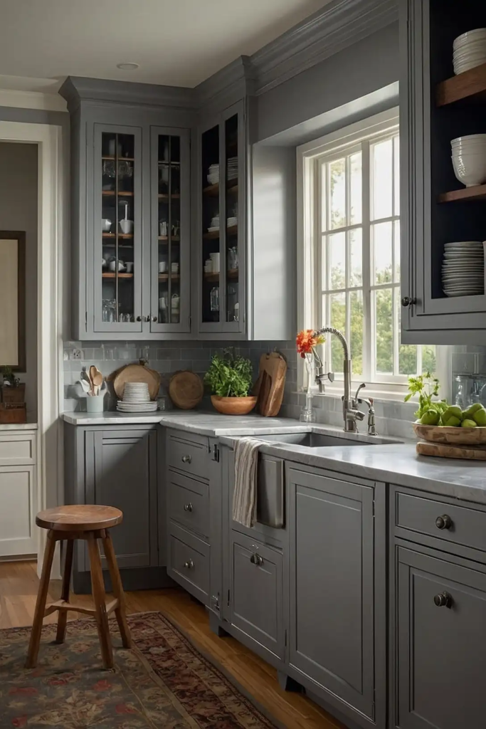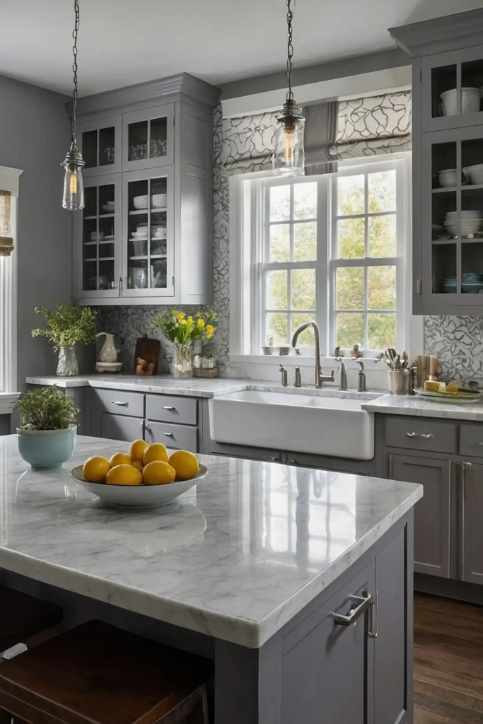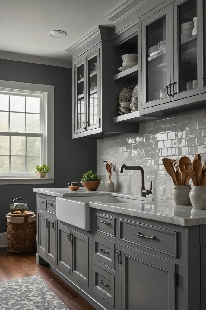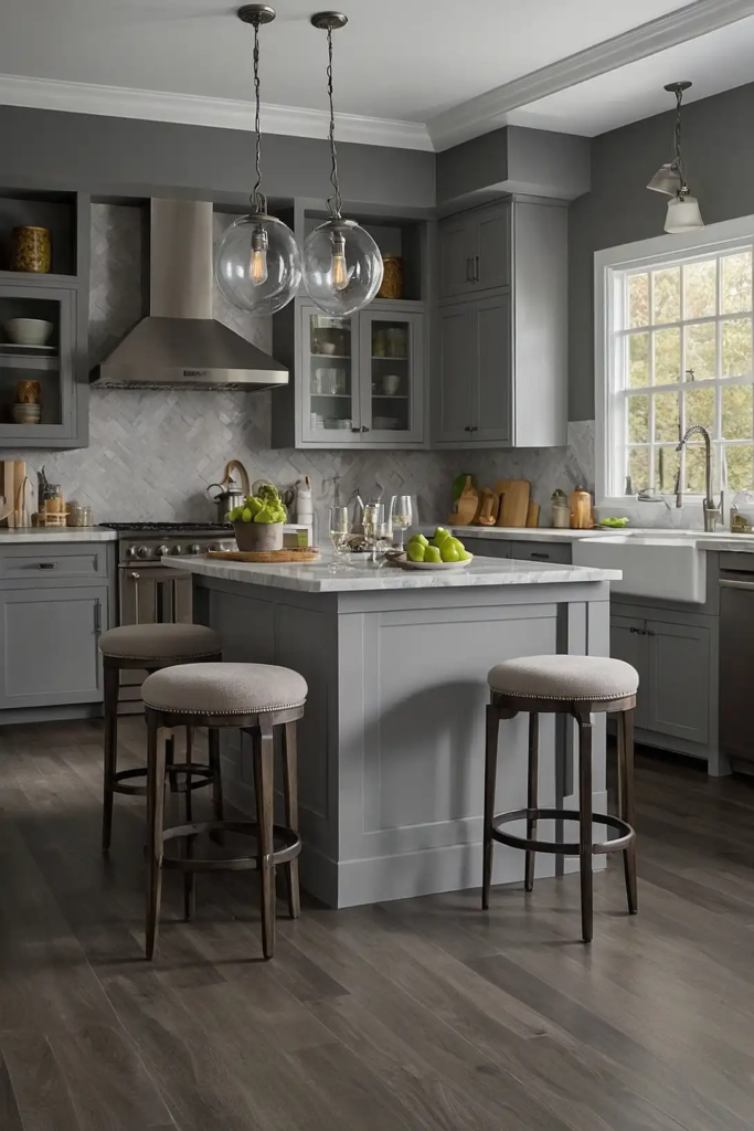 Classic Gray provides just enough contrast with white cabinets without feeling heavy. It pairs beautifully with marble, quartz, or butcher block countertops.