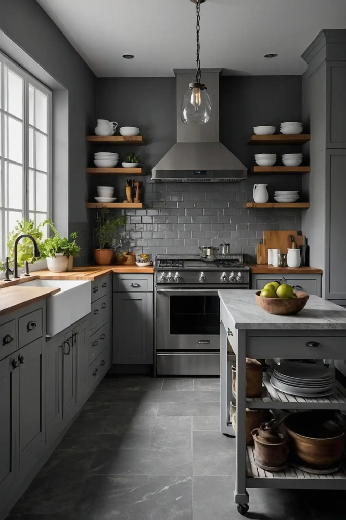 This balanced gray creates subtle depth without visual weight in small kitchens. It has enough complexity to be interesting without closing in your space.