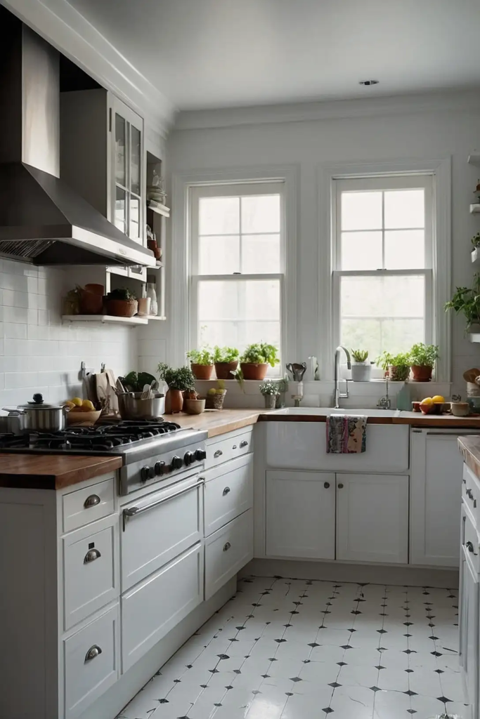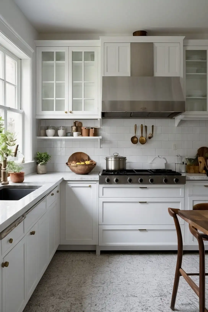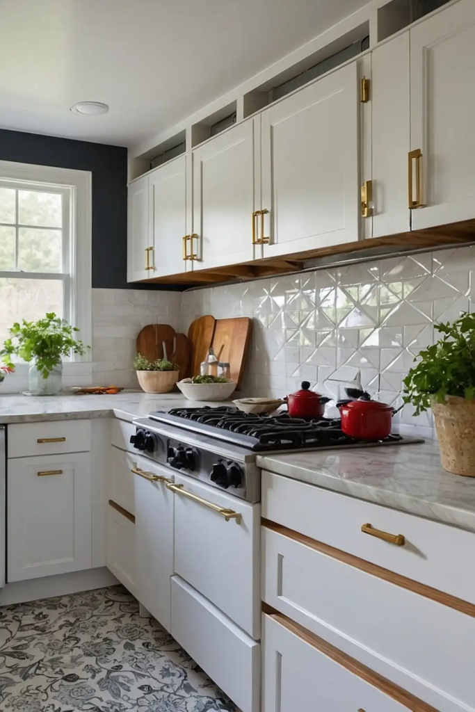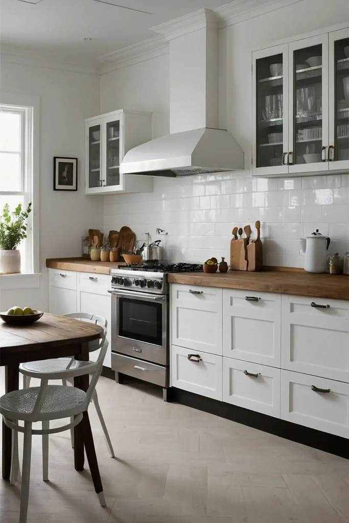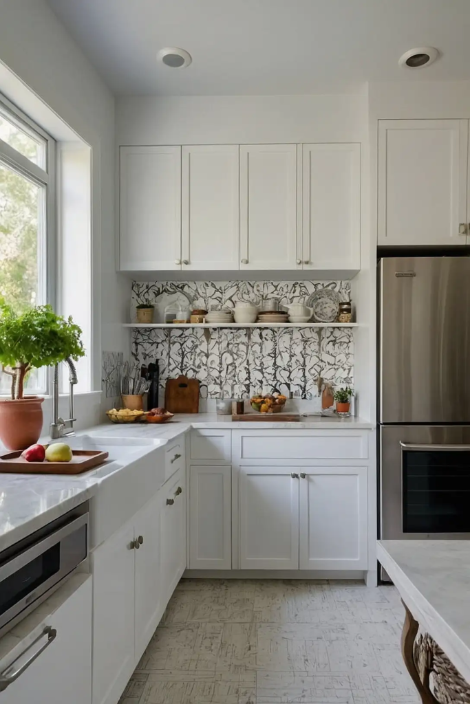 This clean, crisp white creates an airy atmosphere that instantly makes your small kitchen feel more spacious.