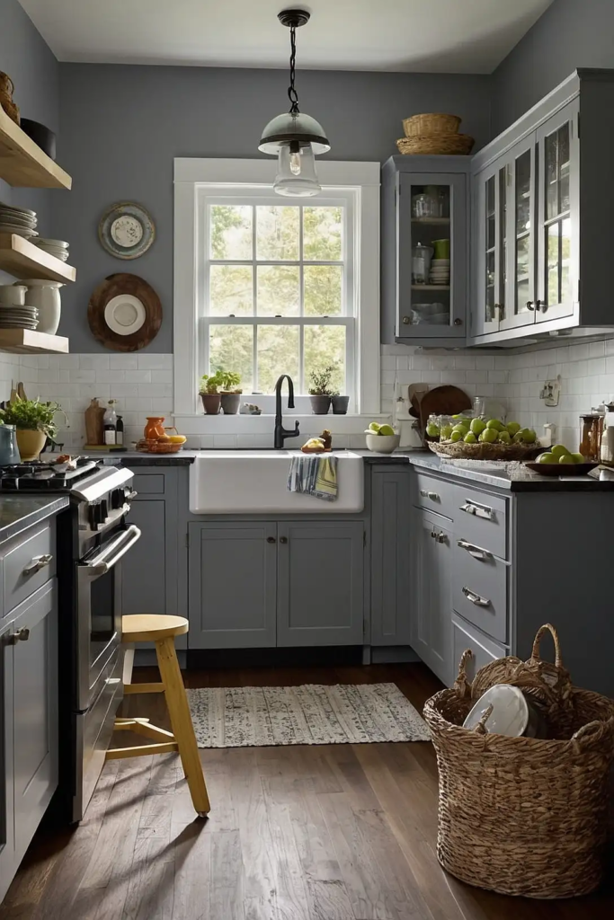 This classic light gray has subtle cool undertones that create a fresh, clean feeling in small kitchens. It adds sophistication without visual weight.