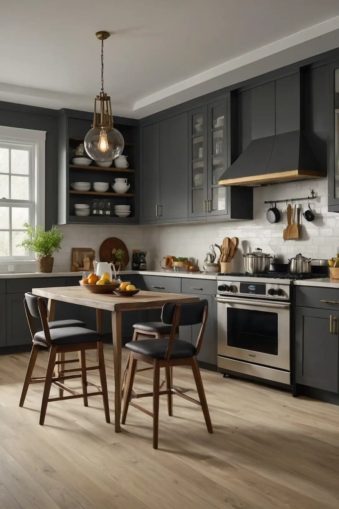 This whisper-soft gray has warm undertones that prevent it from feeling cold or sterile in small kitchens. It creates subtle dimension without closing in your space.